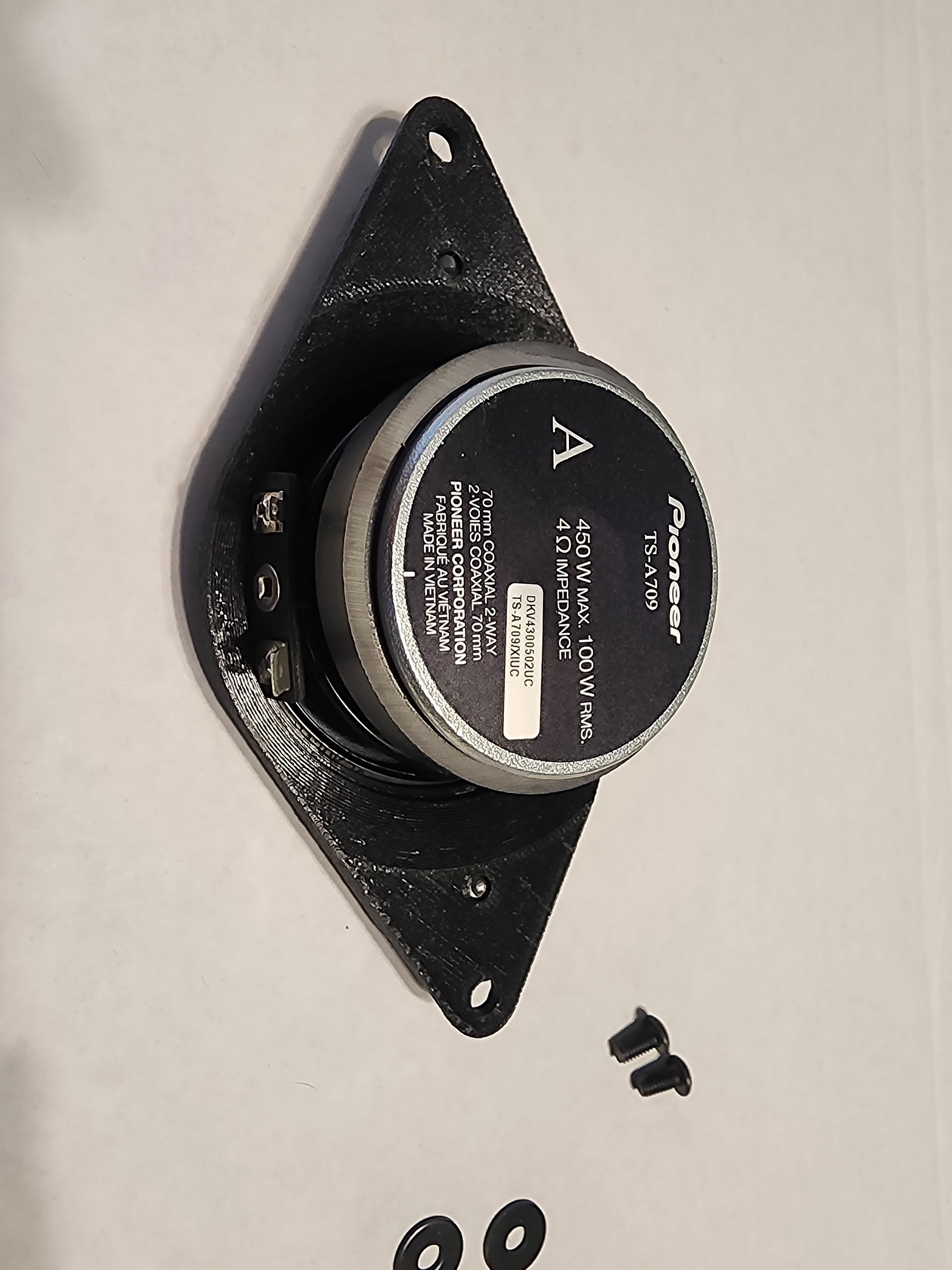 designed around the Pioneer TS-A709 2.75" speaker, This adapter allows you to fit a much more powerful speaker in the lower dash speaker locations and fit with all the factory amps in place.